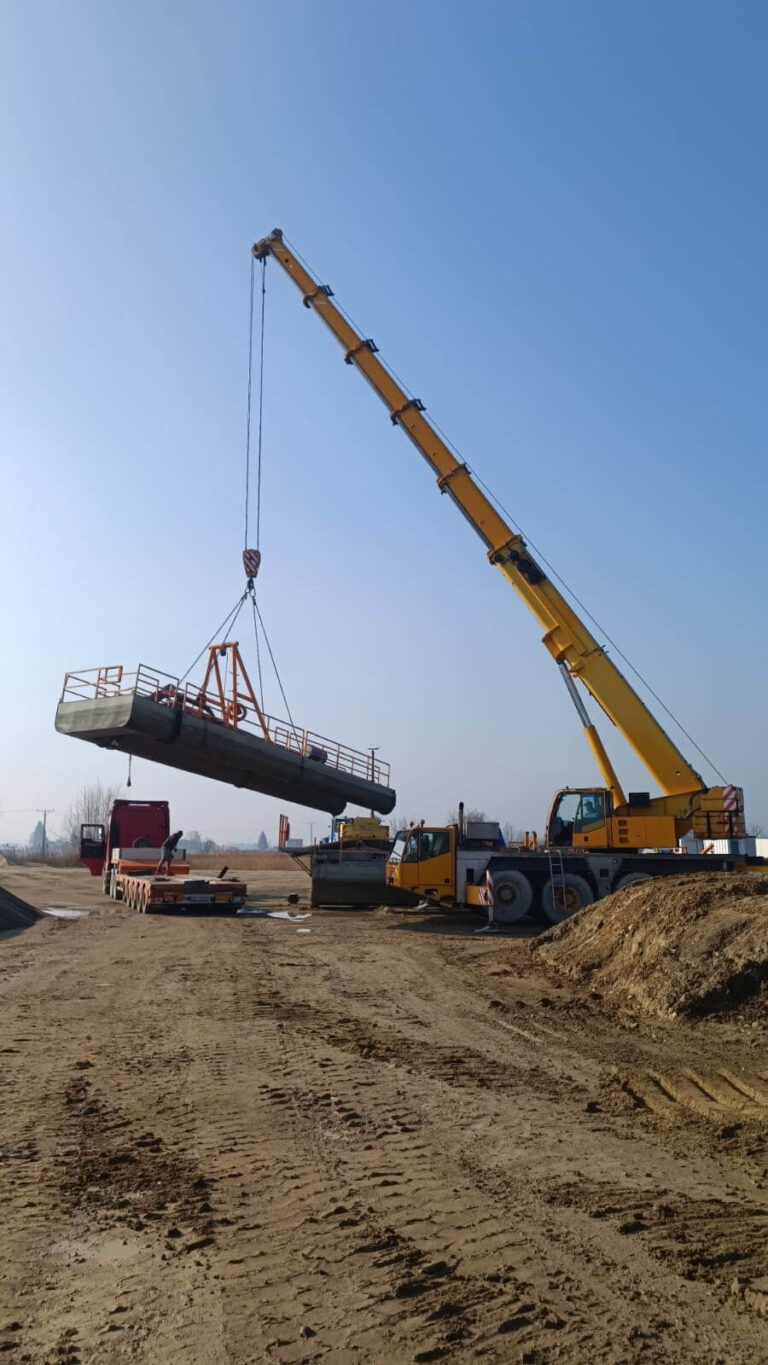 - usługi dźwigiem podczas budowy mostów i dróg,